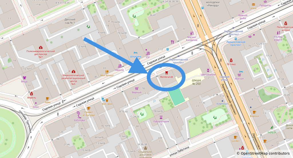 Стоматологическая клиника Рембрант находится по адресу: 190121, Санкт-Петербург, ул. Садовая 76